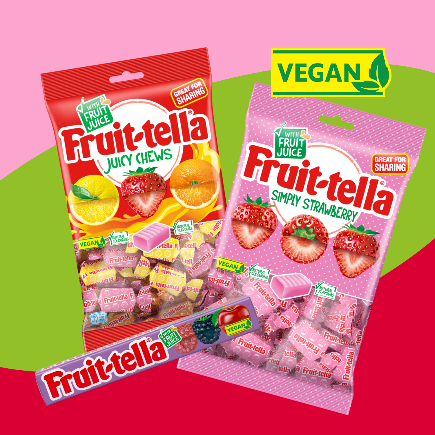 Bursting with flavour and delightfully delicious, our sweets are made with real fruit juice and natural flavours and colourings. Fruit-tella support and inspire parents encouraging together time and elicit joy through delivering deliciously fruit and sweet experiences, whilst offering the highest quality, natural ingredients.